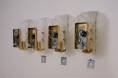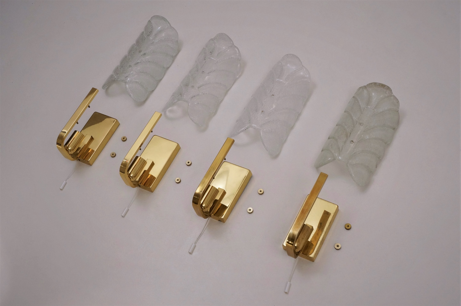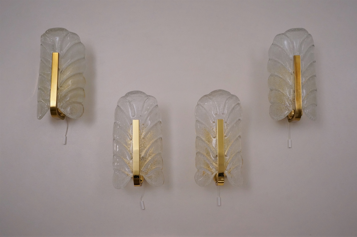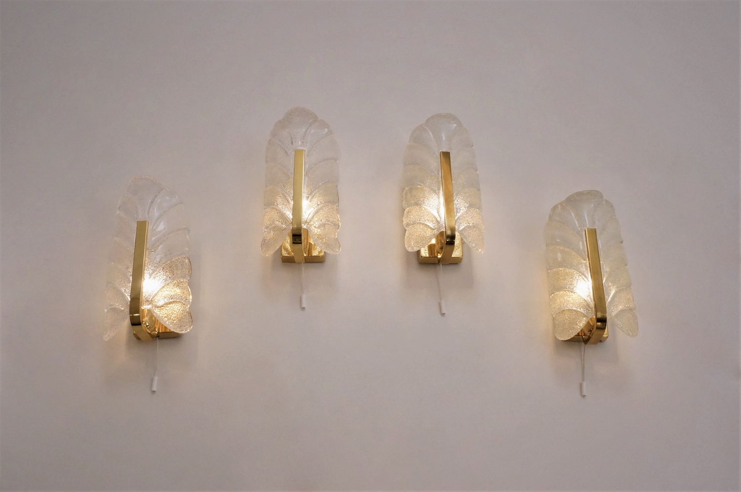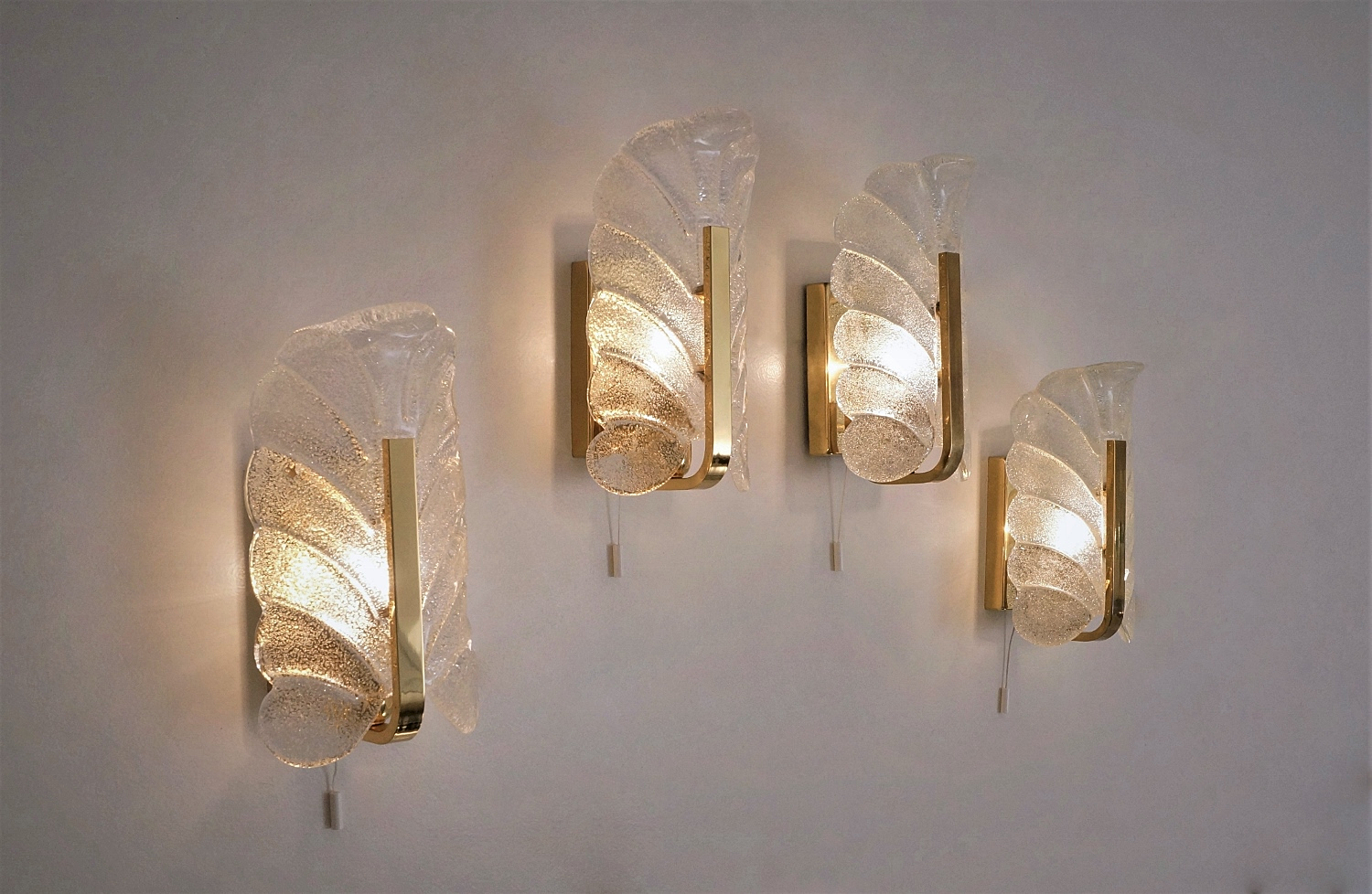 This set of four vintage sculptural wall lights is attributed to Carl Fagerlund for Orrefors Lighting.
