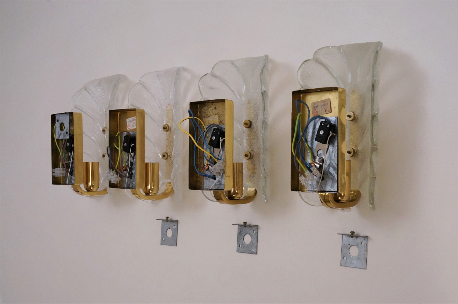 These wall lights have been thoroughly cleaned respecting the vintage patina. Each is is newly rewired, earthed, fully working and ready to install. Light bulbs included. It is possible to install these lights in other countries although it may be necessary to purchase different light bulbs suitable to local electricity. They can be used with a dimmer.