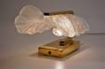 Each individual wall light is an elegant composition in quality solid brass with one large glass sculptural leaf.