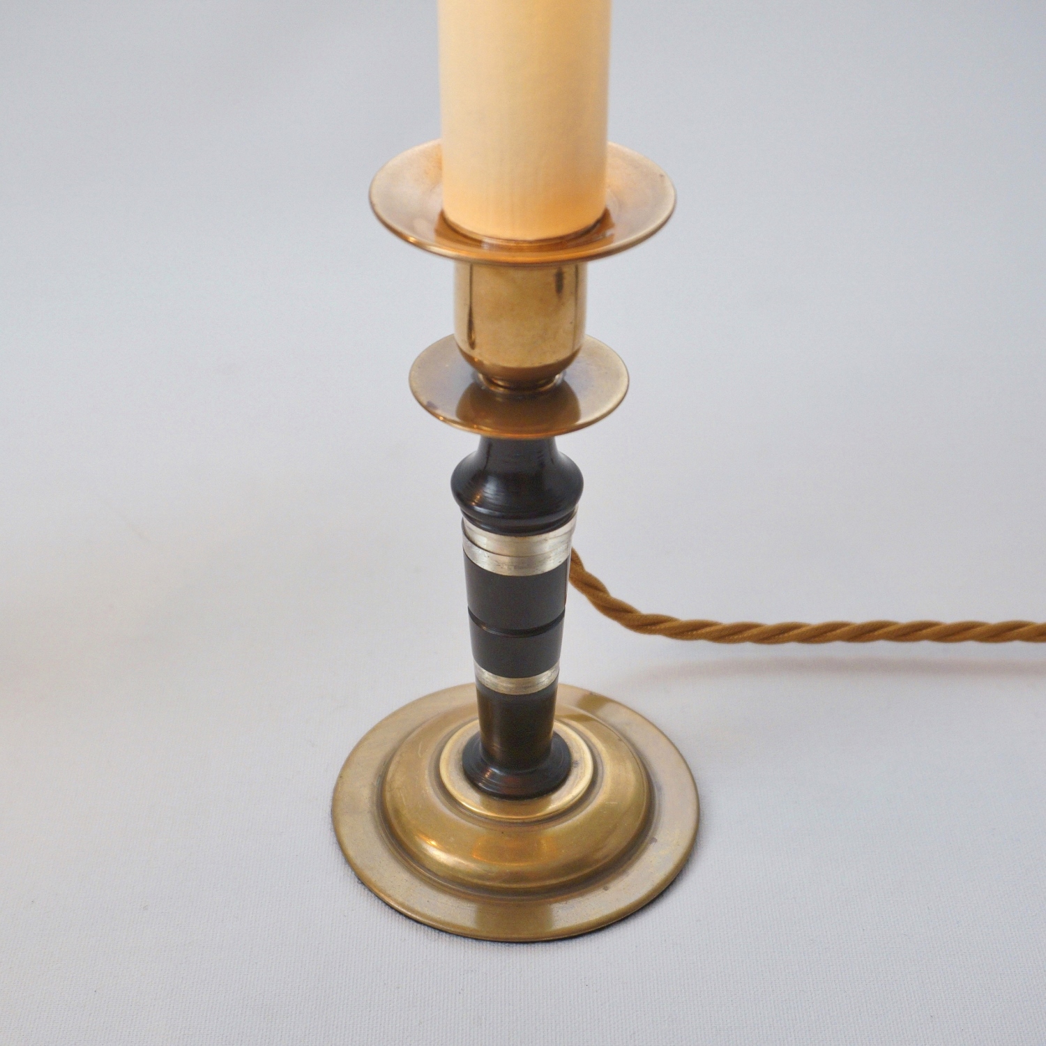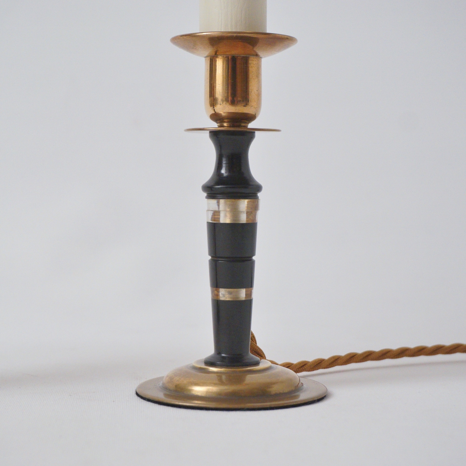 Presented here is a very elegant & chic pair of vintage Mid 20th Century candlesticks of Art Deco Revival style made in the new Modernist style fashionable in France around the 1950`s, converted into lamps.