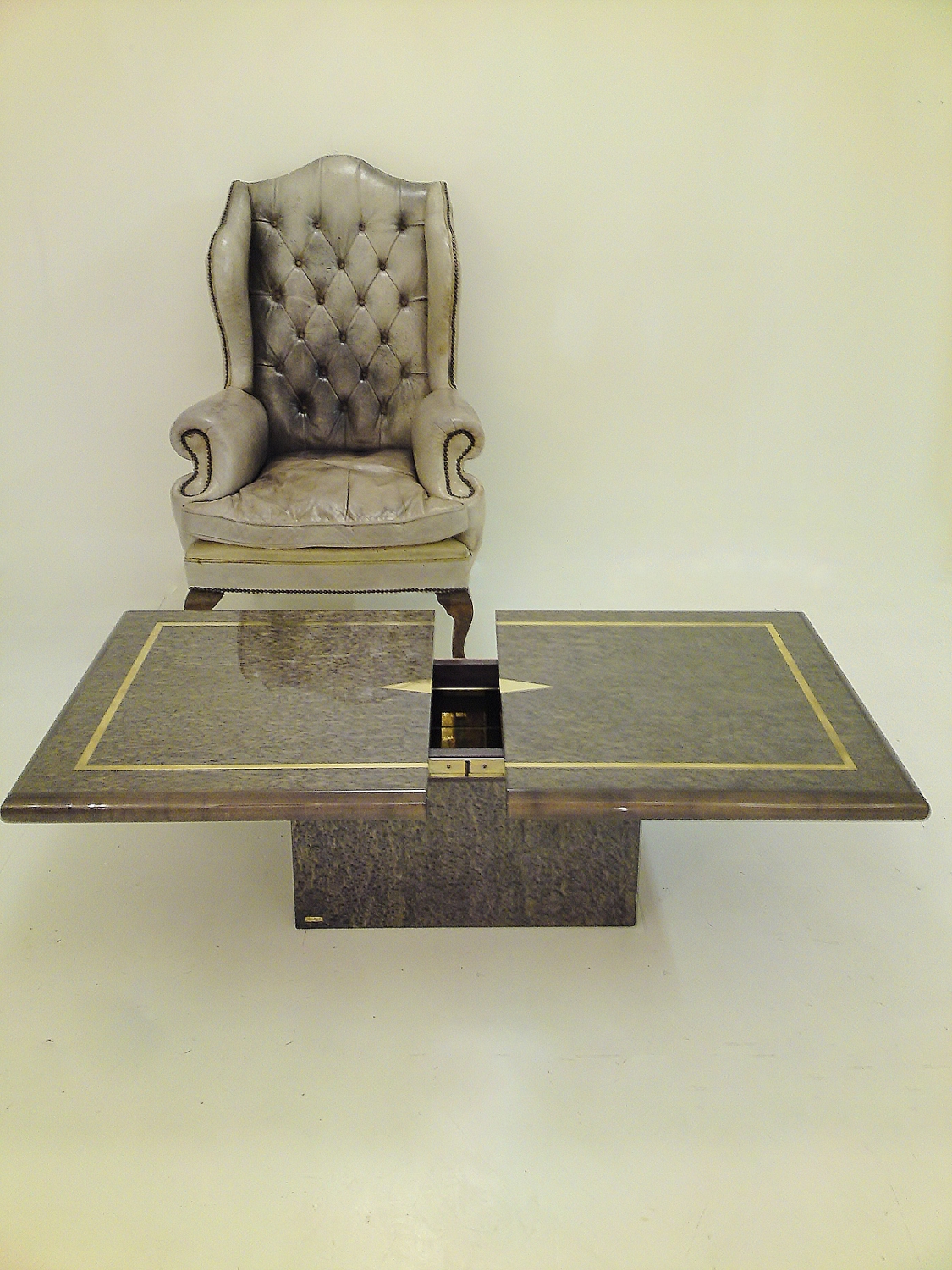 Since the 1970`s, Eric Maville has been designing glamorous pieces for French furniture makers such as Roche Bobois. He reinvents French Art Deco using precious materials and high lacquer finishes.