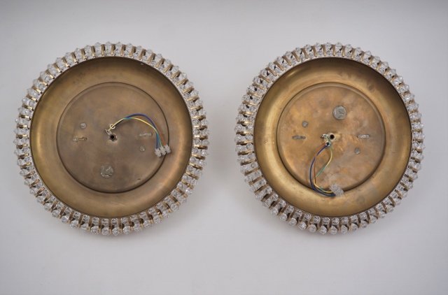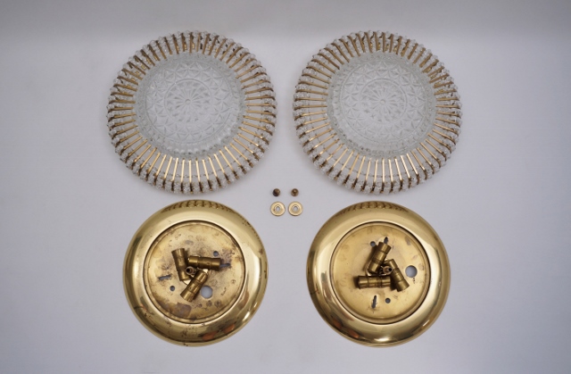 This pair of large vintage lights, by German manufacturer Hillebrand, were designed to work as either ceiling or wall lights.
