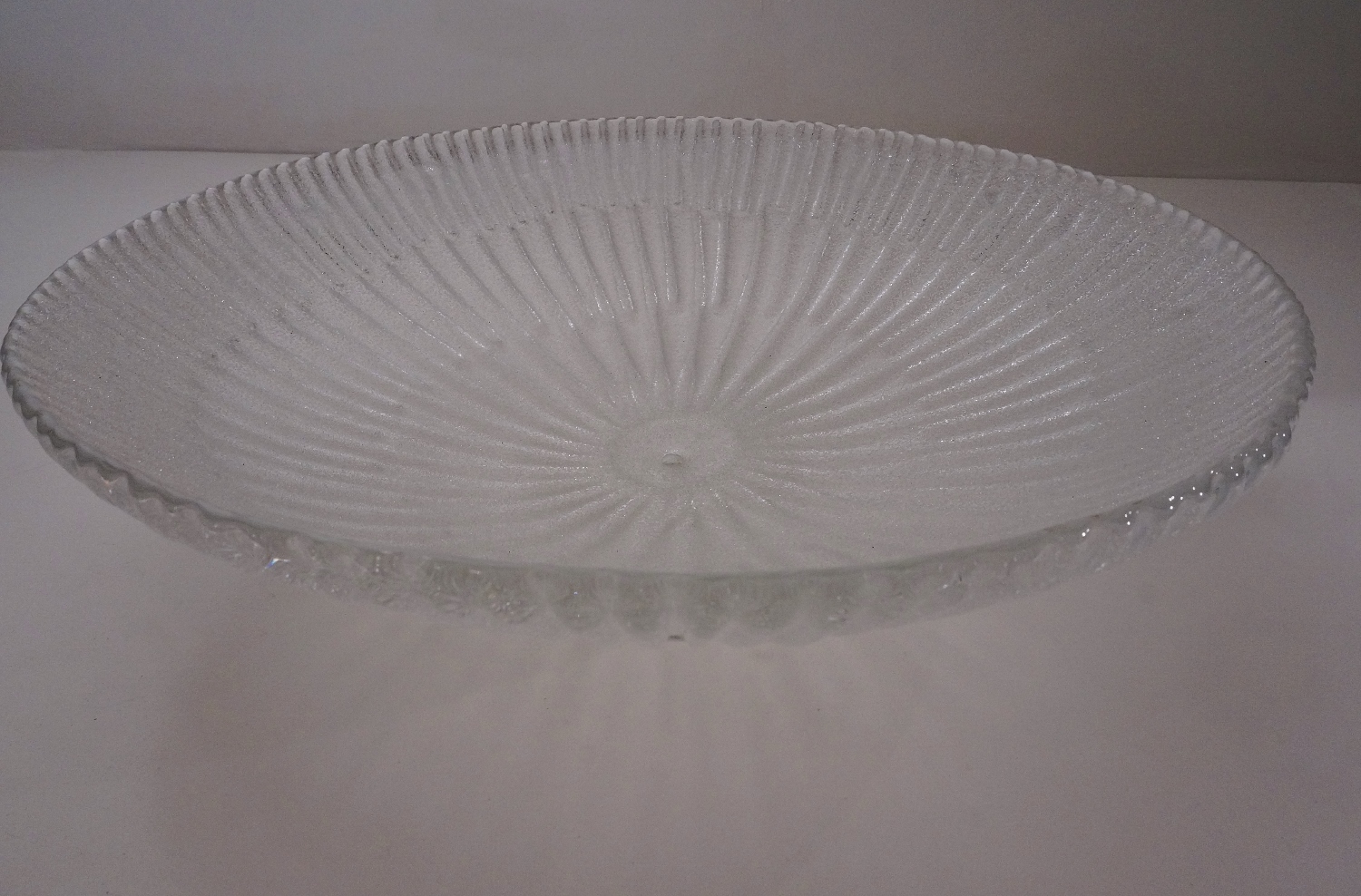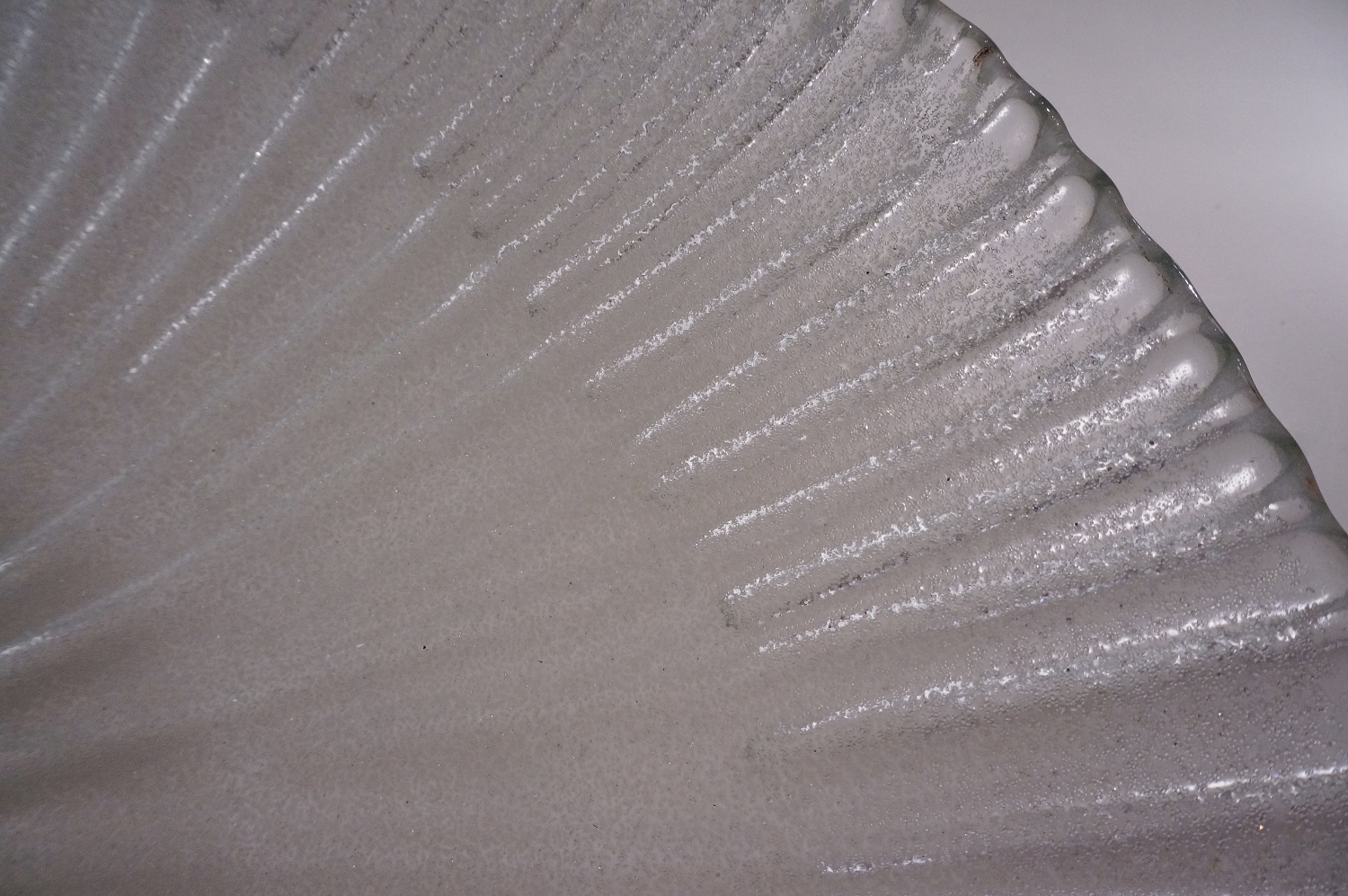undulating ripples radiating from the centre. Moving outwards the ripples double in a 7 cm portion along the edge, thereby creating more texture & depth. The border is also undulated following the radial pattern which further adds to the sense of movement.