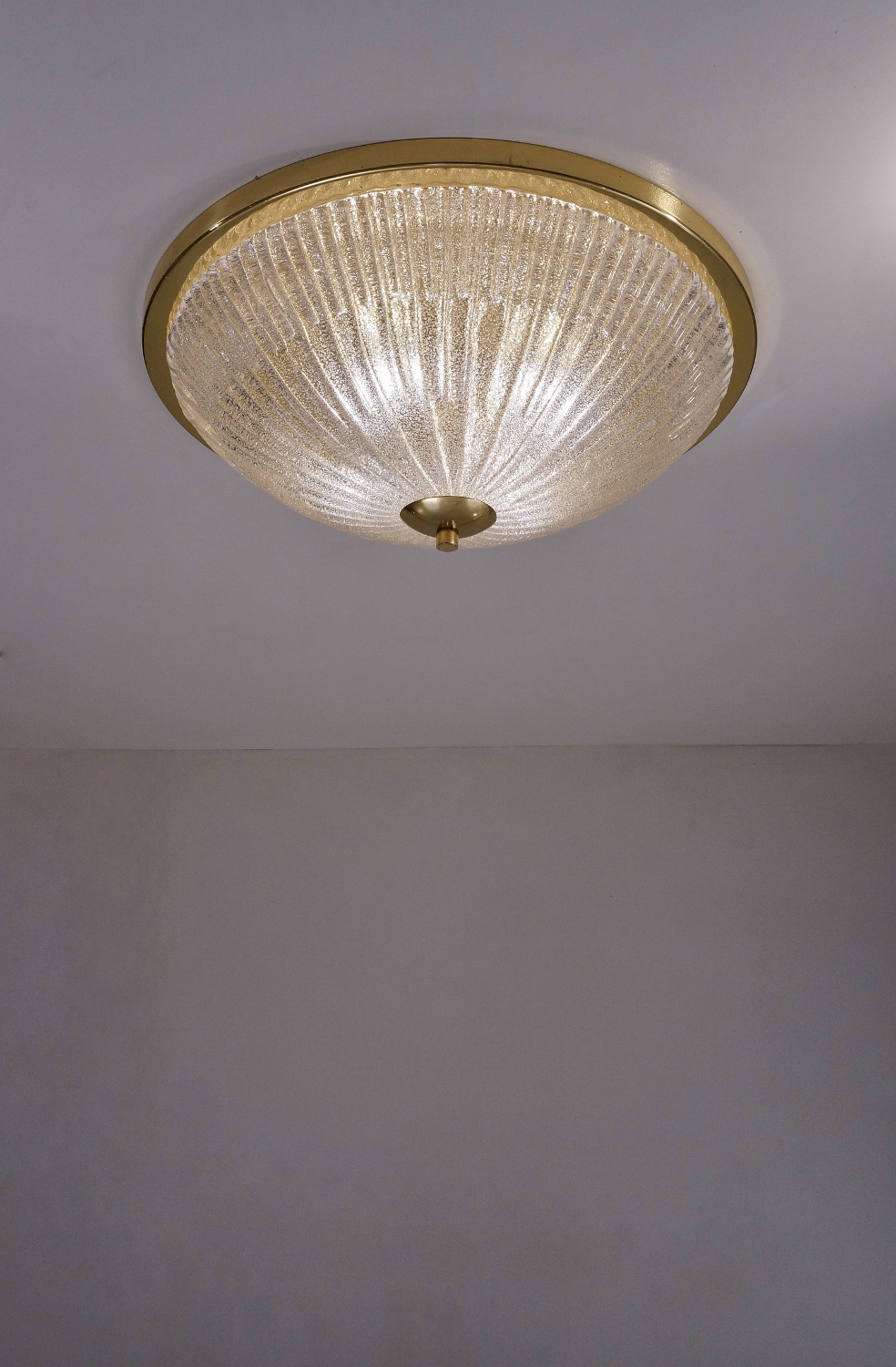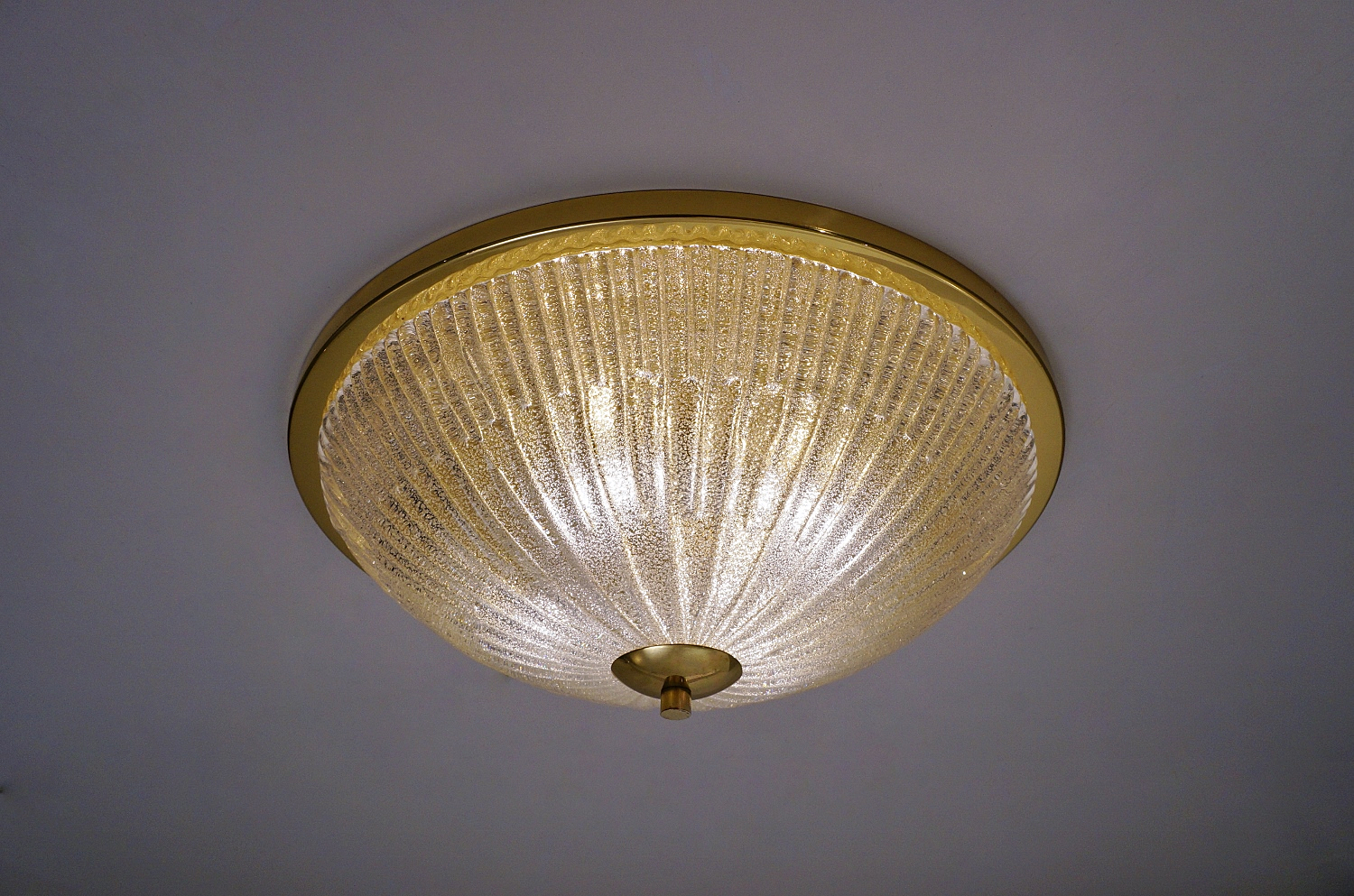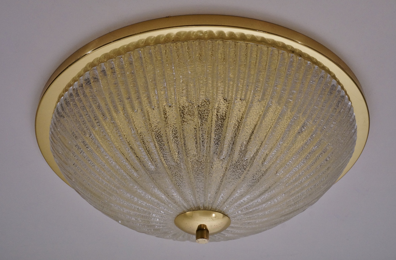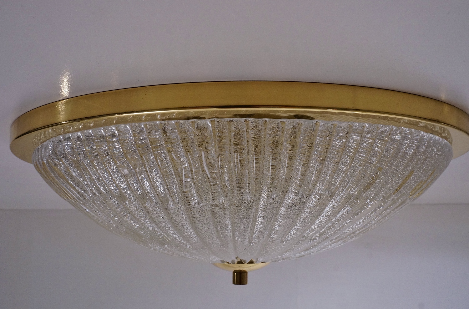 We have in stock at Roomscape another vintage 1970`s Hillebrand large flush light with a Murano Art Glass shade, please see item # 10866