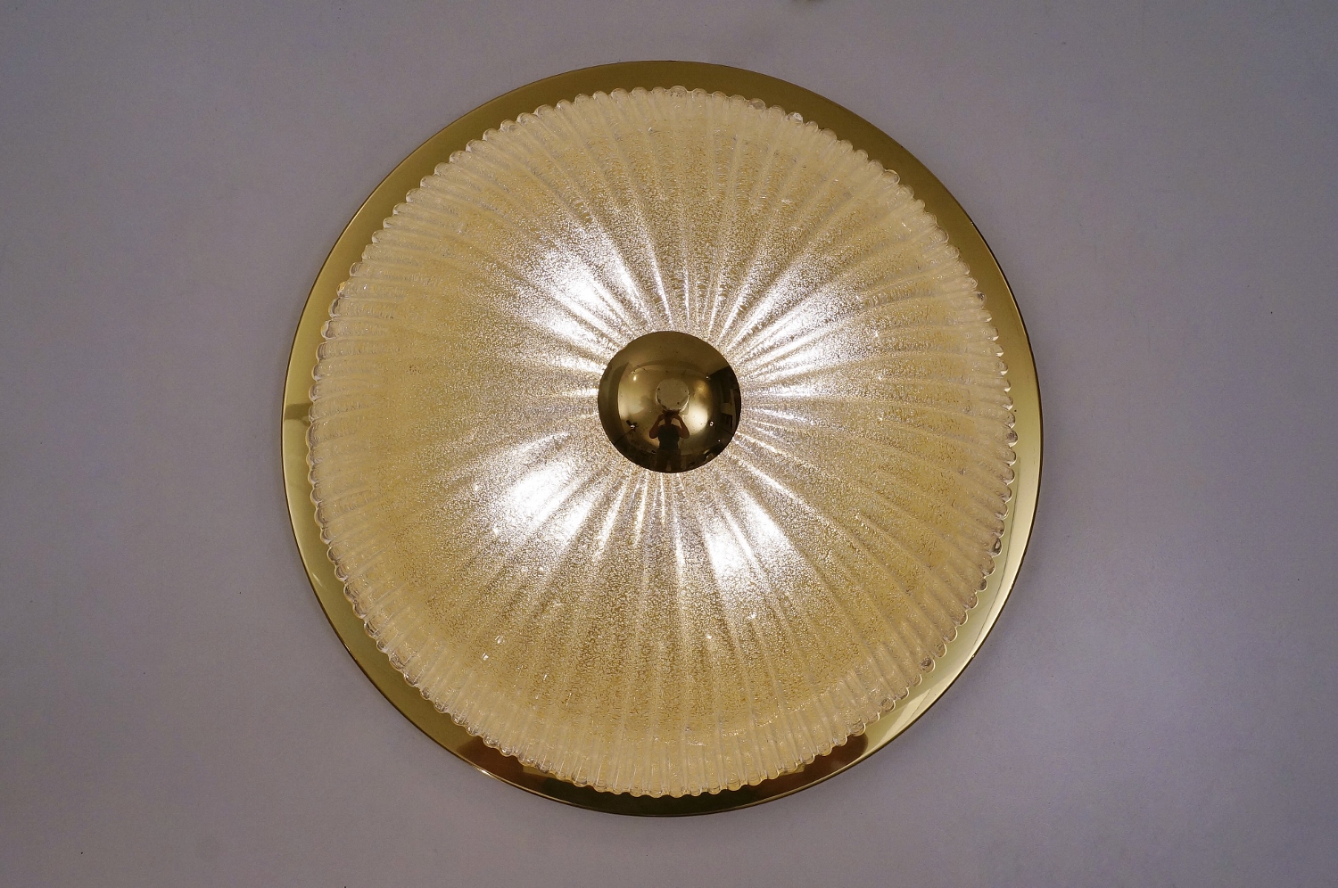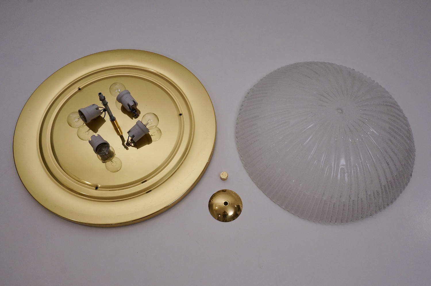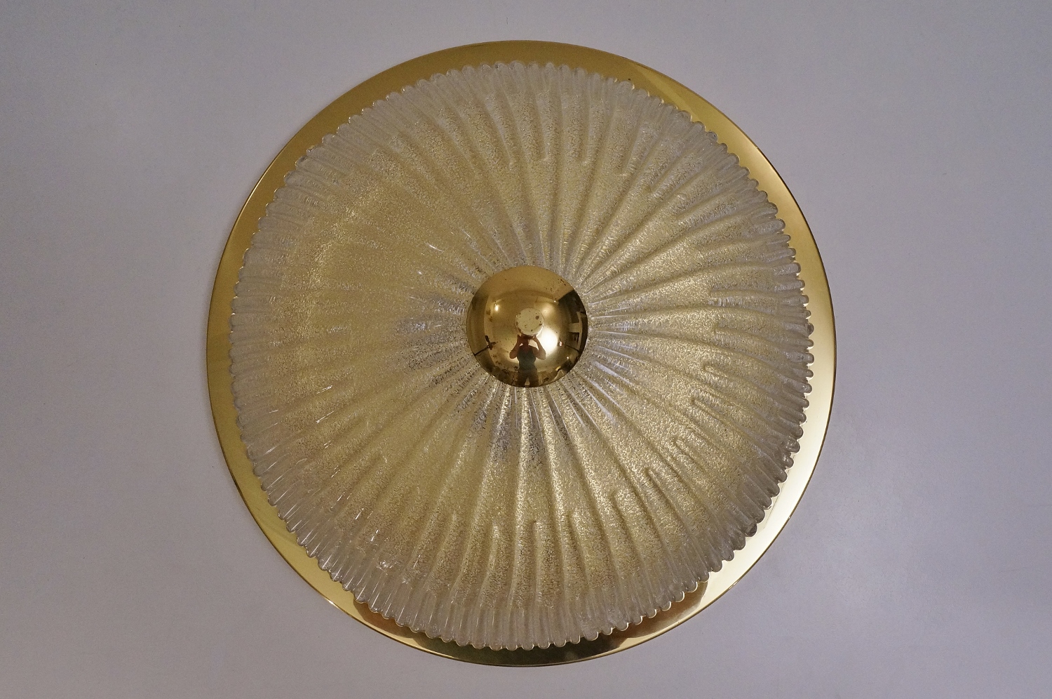 Large flush light in brass & crystal glass by Hillebrand Lighting, 1970`s ca, German.