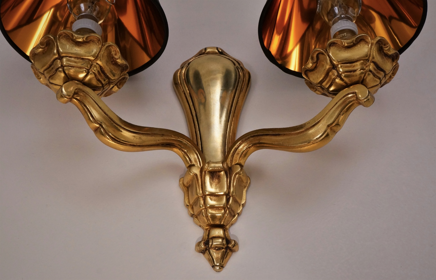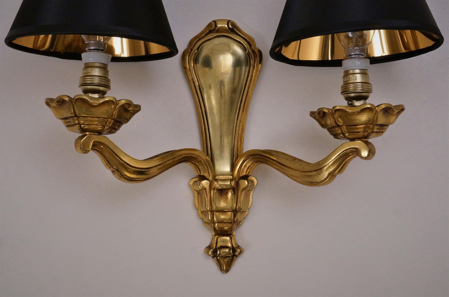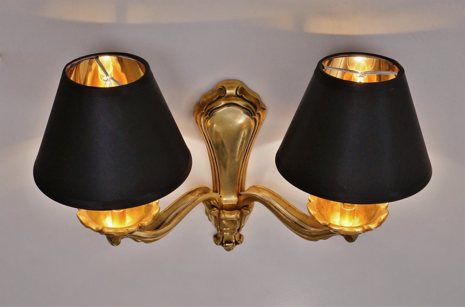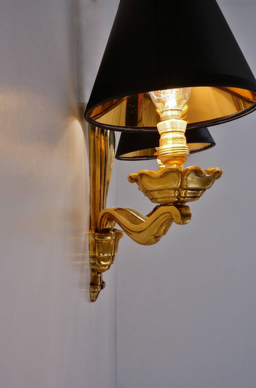 Maison Bagues wall lights, quality bronze casting with gold plated gilt, 1940`s ca, French.