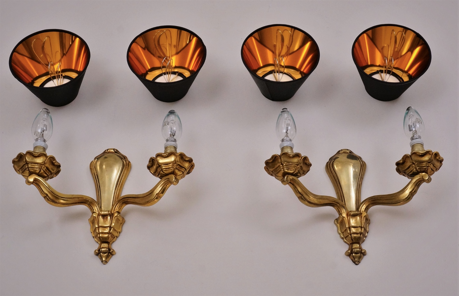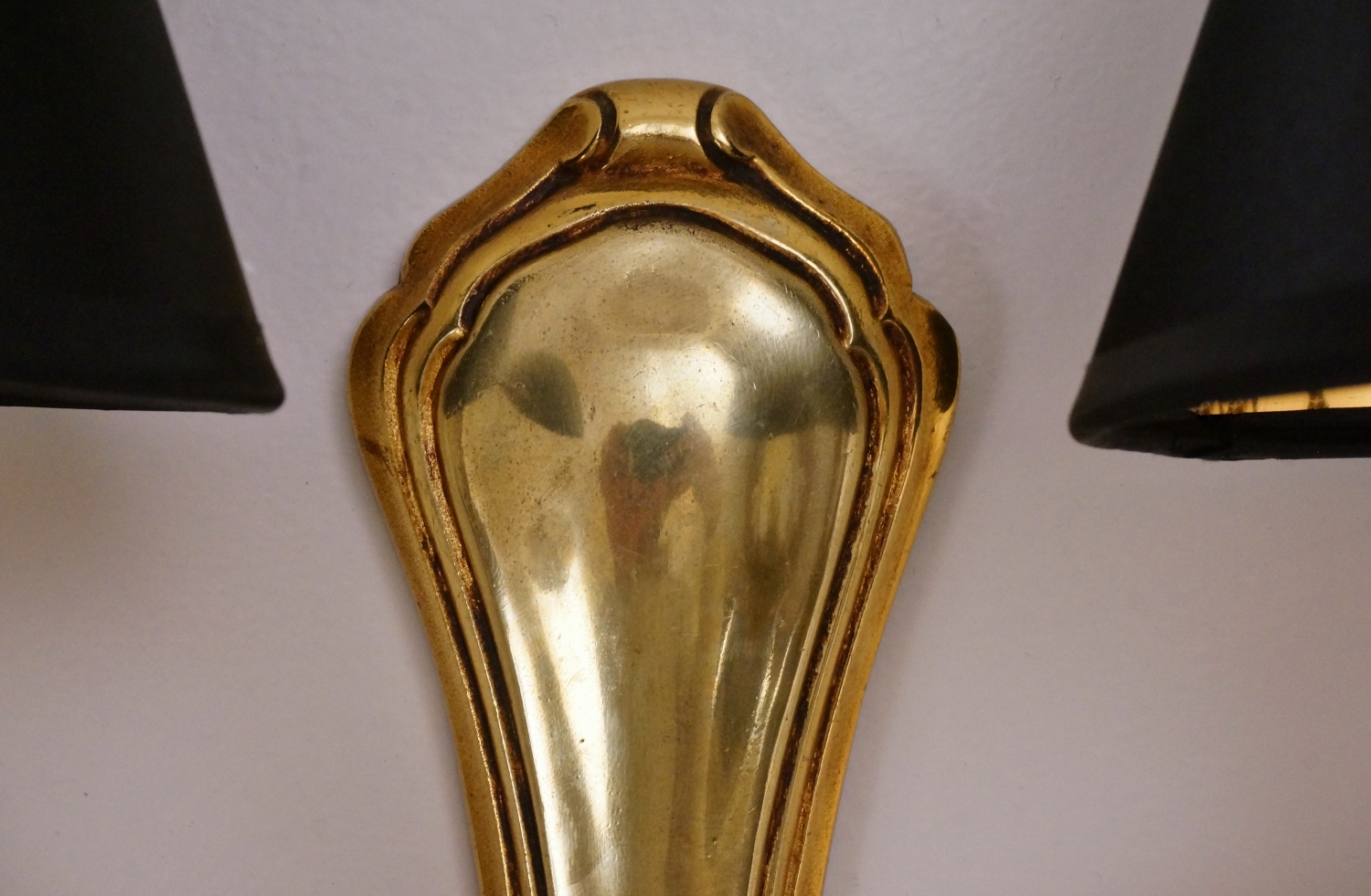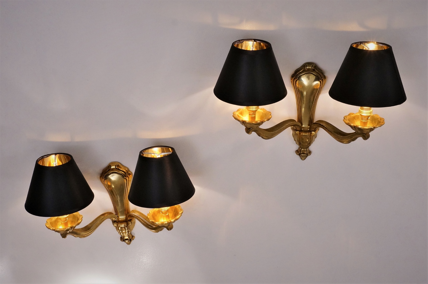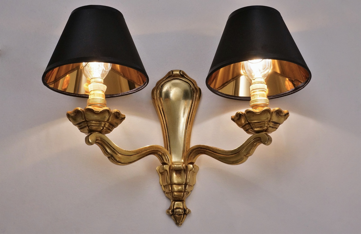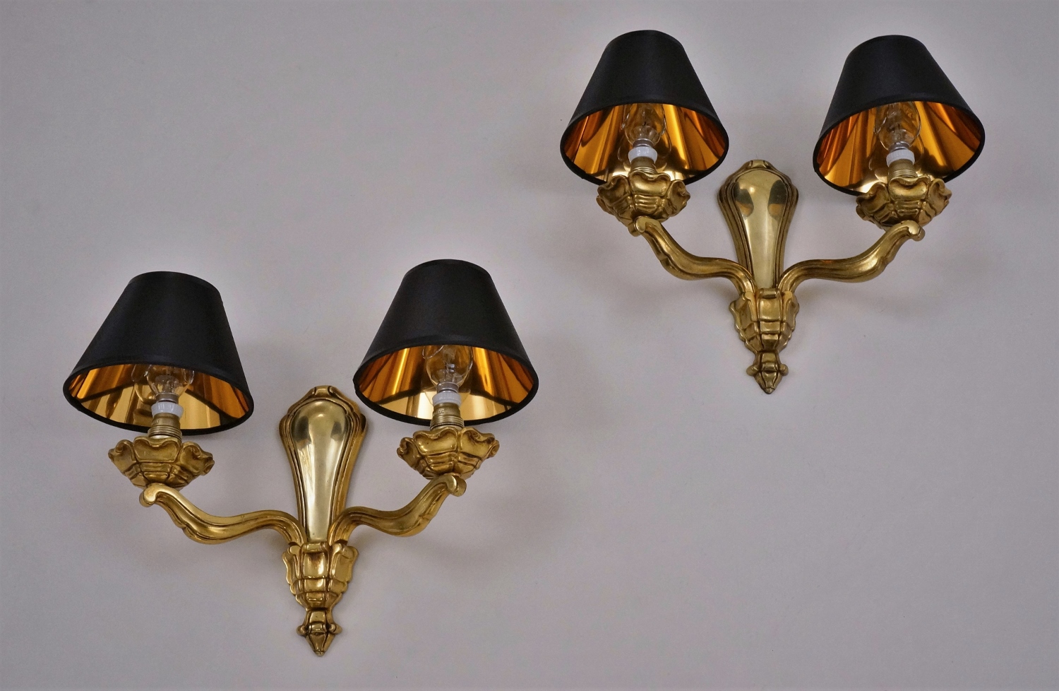 Maison Bagues wall lights, quality bronze casting with gold plated gilt, 1940`s ca, French.