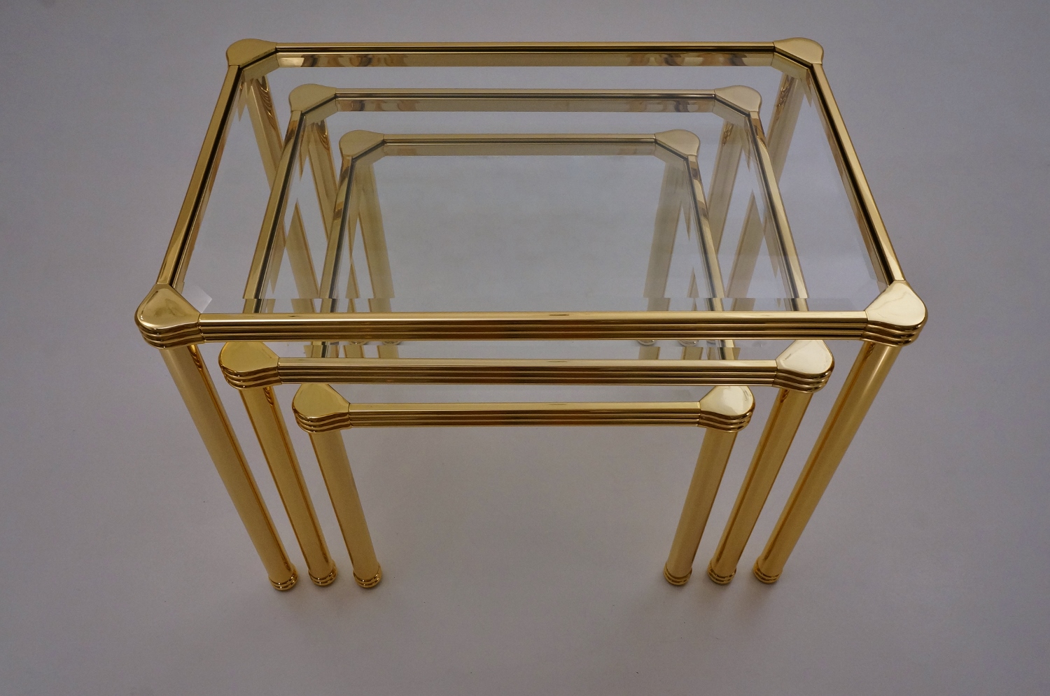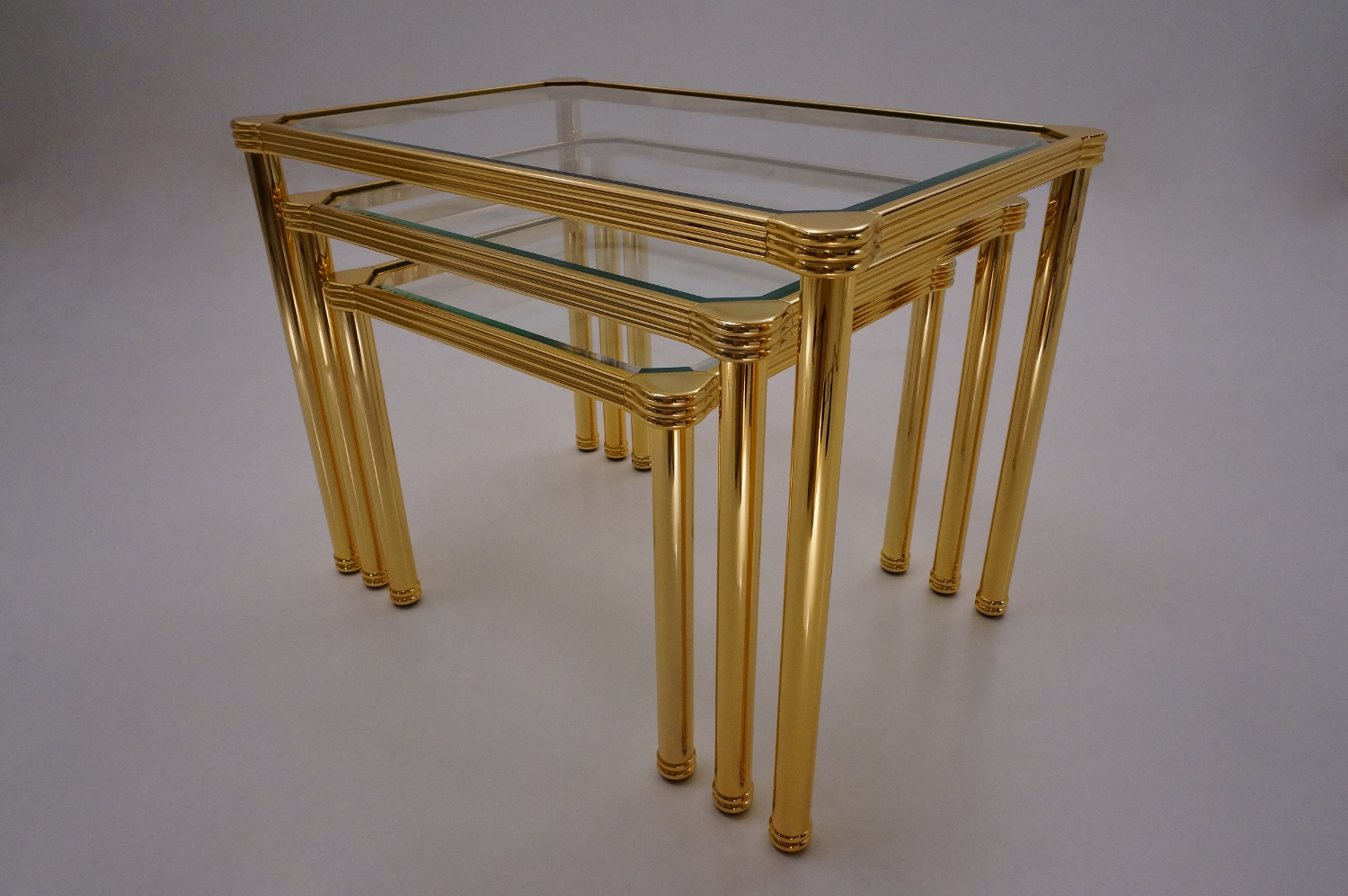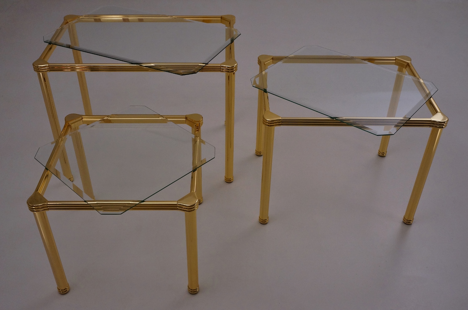 Orsenigo nesting tables, gold plated gilt & bevelled glass, 1980`s ca, Italian.