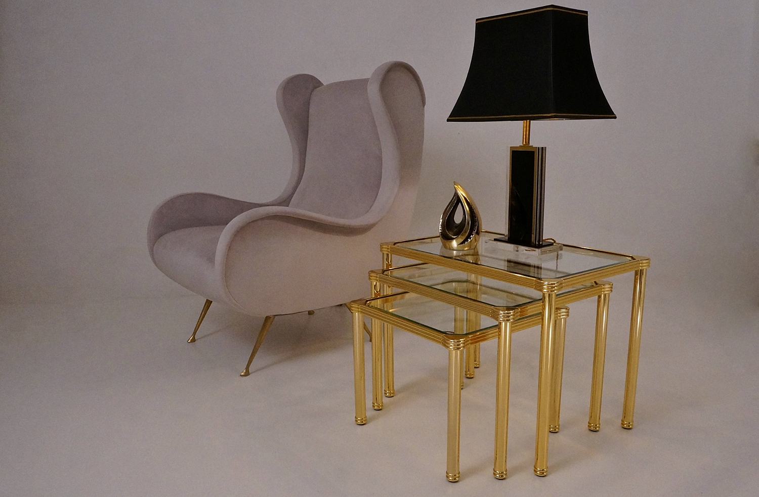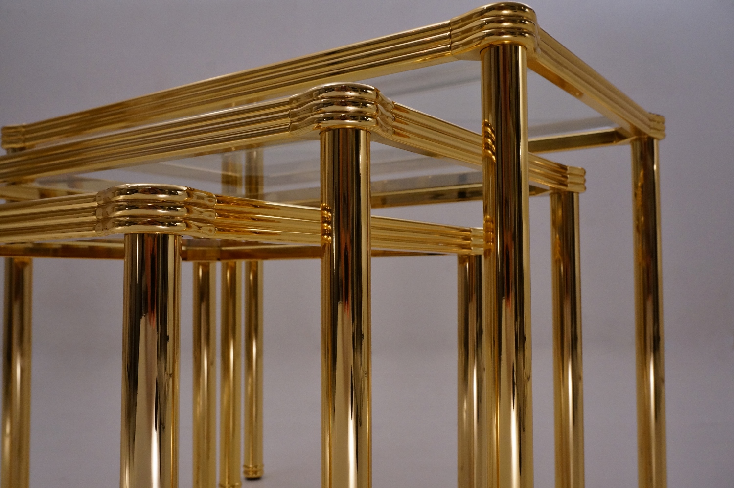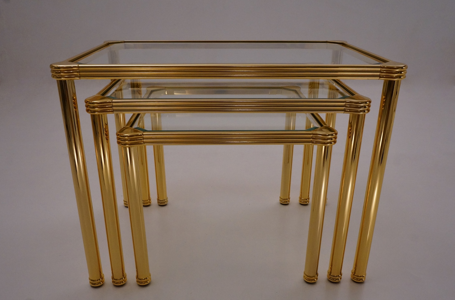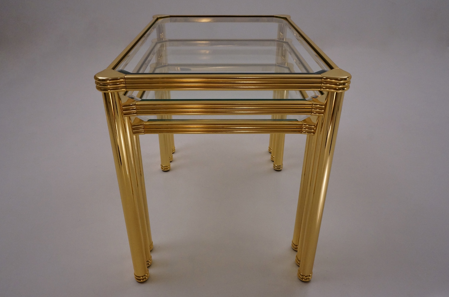 Orsenigo nesting tables, gold plated gilt & bevelled glass, 1980`s ca, Italian.