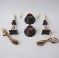This pair of antique lamps have been gently cleaned while respecting the aged patina. They are newly rewired, earthed, PAT tested by an electrician and ready to use. Each has the following new components: lamp holder with a cream card cover, gold silk cable, black cord switch, black plug (UK Plug up to 250V) & clip on silk lampshade. Lightbulbs included. These lamps can be used with a dimmer. It is possible to use these lights in other countries with a light bulb suitable to local electricity.