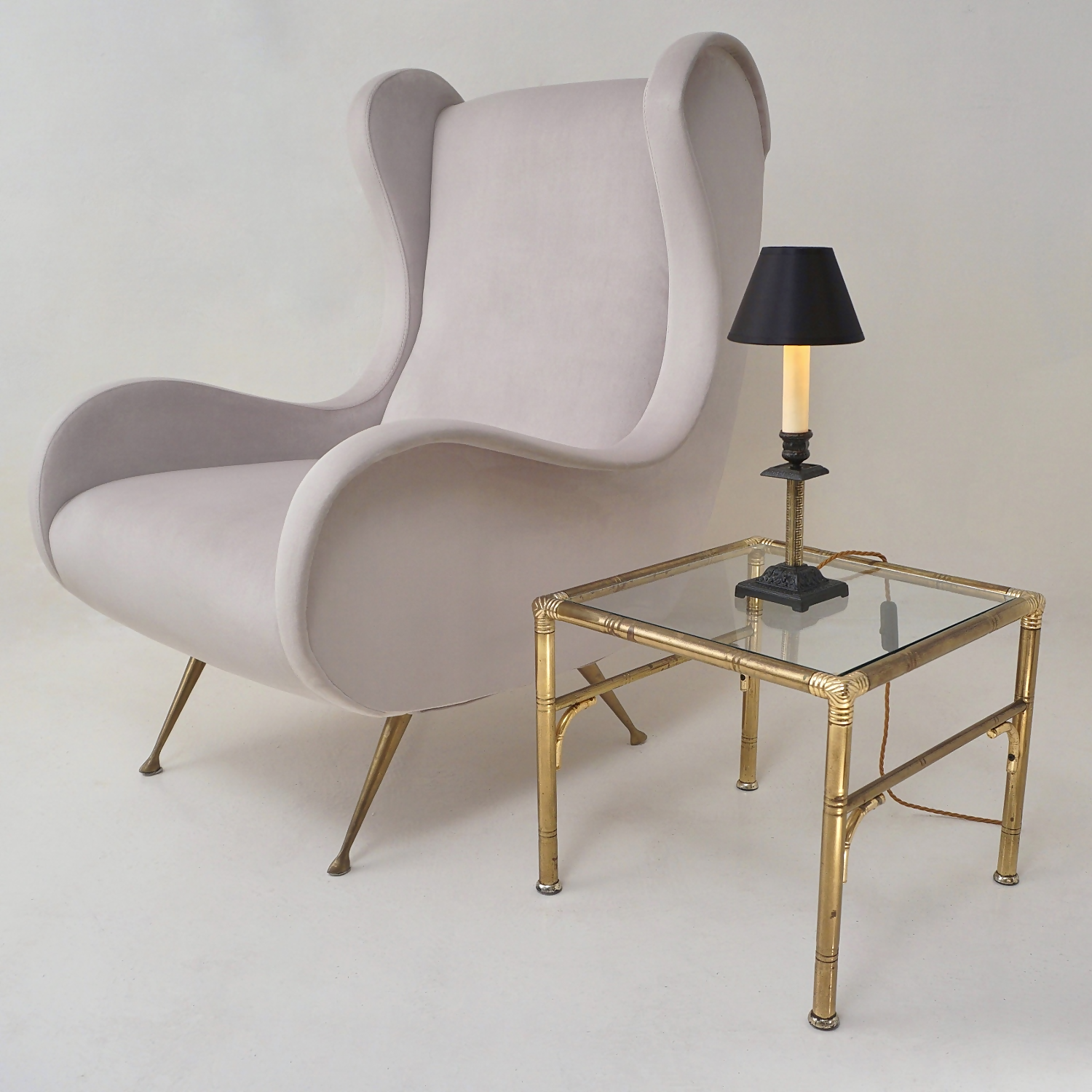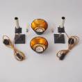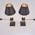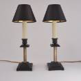 Each lamp is finished with a new clip-on black silk lampshade lined metallic gold. This complements the tones of the base.