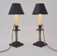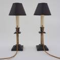 a pair of antique Aesthetic Movement English candlesticks converted into lamps.