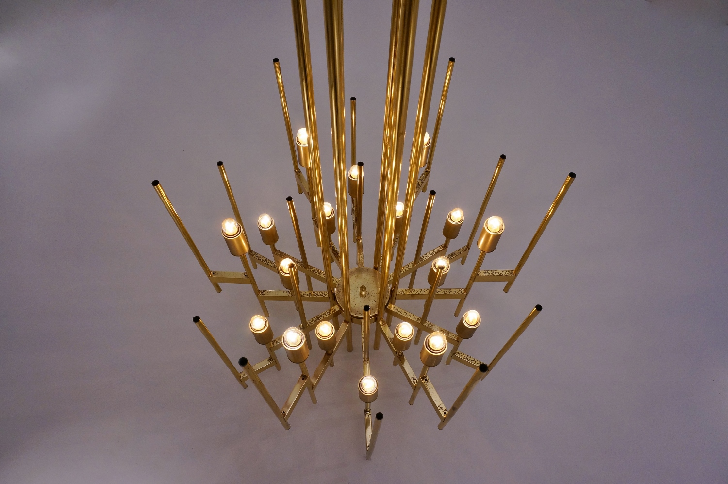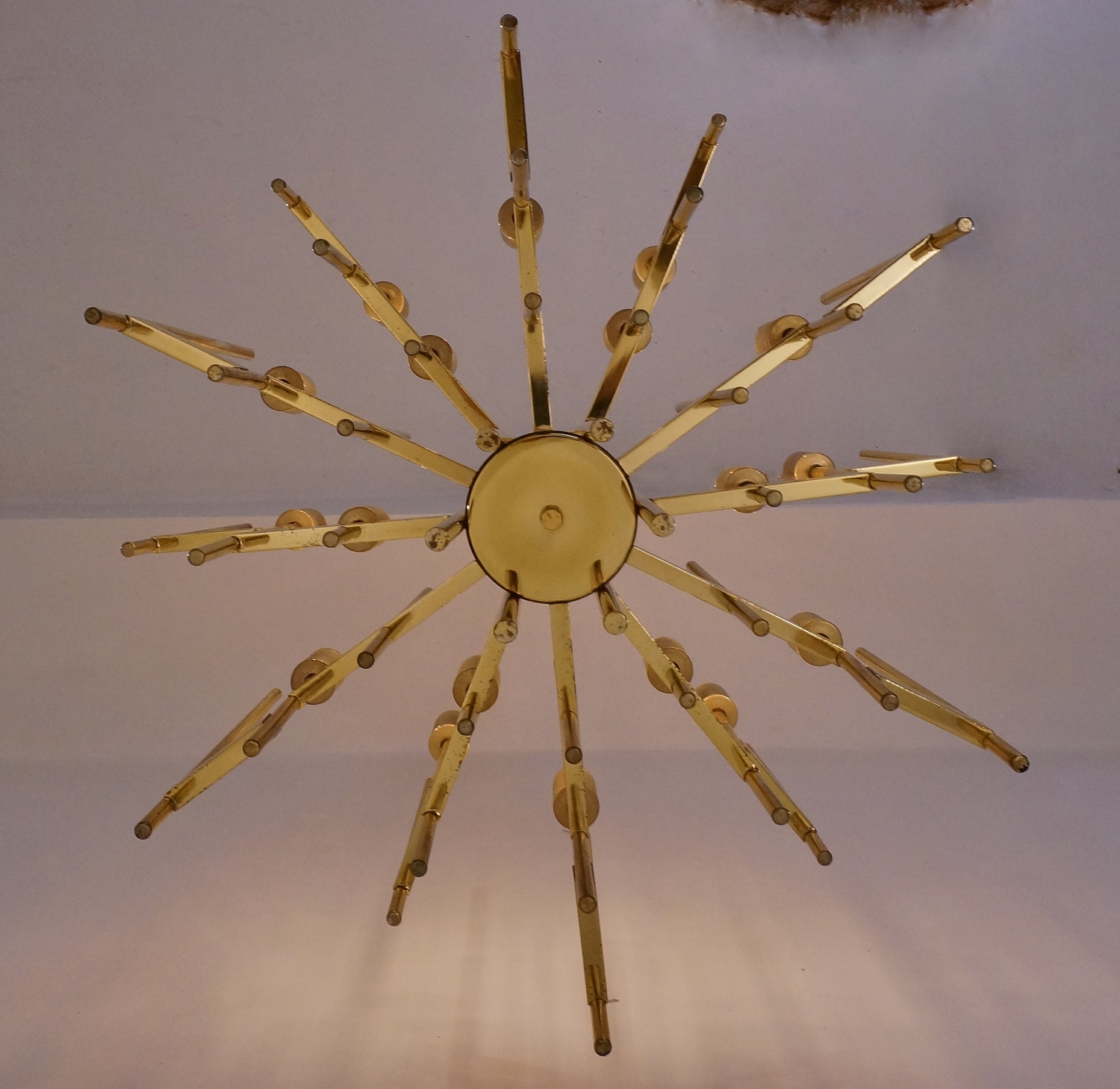 Sciolari brass chandelier, particularly large with 18 lights, 1970`s ca, Italian.