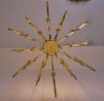 The sculptural composition is an elegant assemblage of 12 elongated arms; each finished alternating with either 2 lights or a single light, for a total of 18 lights.