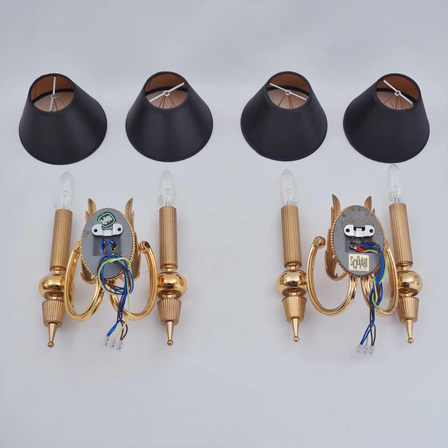 These wall lights have been gently cleaned while respecting the vintage patina. They are newly rewired & earthed, PAT tested by an electrician and ready to install. They have 4 new E14 lamp holders and 4 new lampshades. These lights can be use with a dimmer. It is possible to use these sconces in other countries although it may be necessary to purchase different light bulbs suitable to local electricity.
