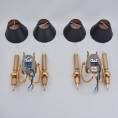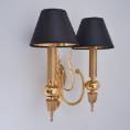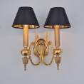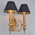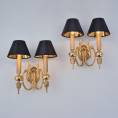 Each light is finished with a new clip-on black silk lampshade. These have a black silk trim and metallic gold lining.