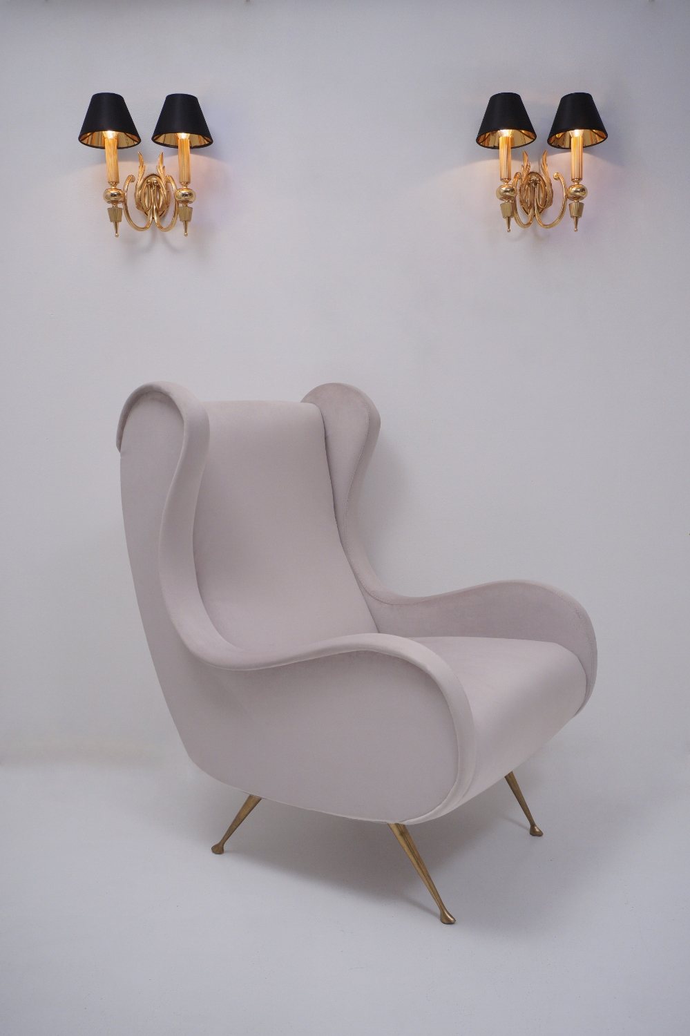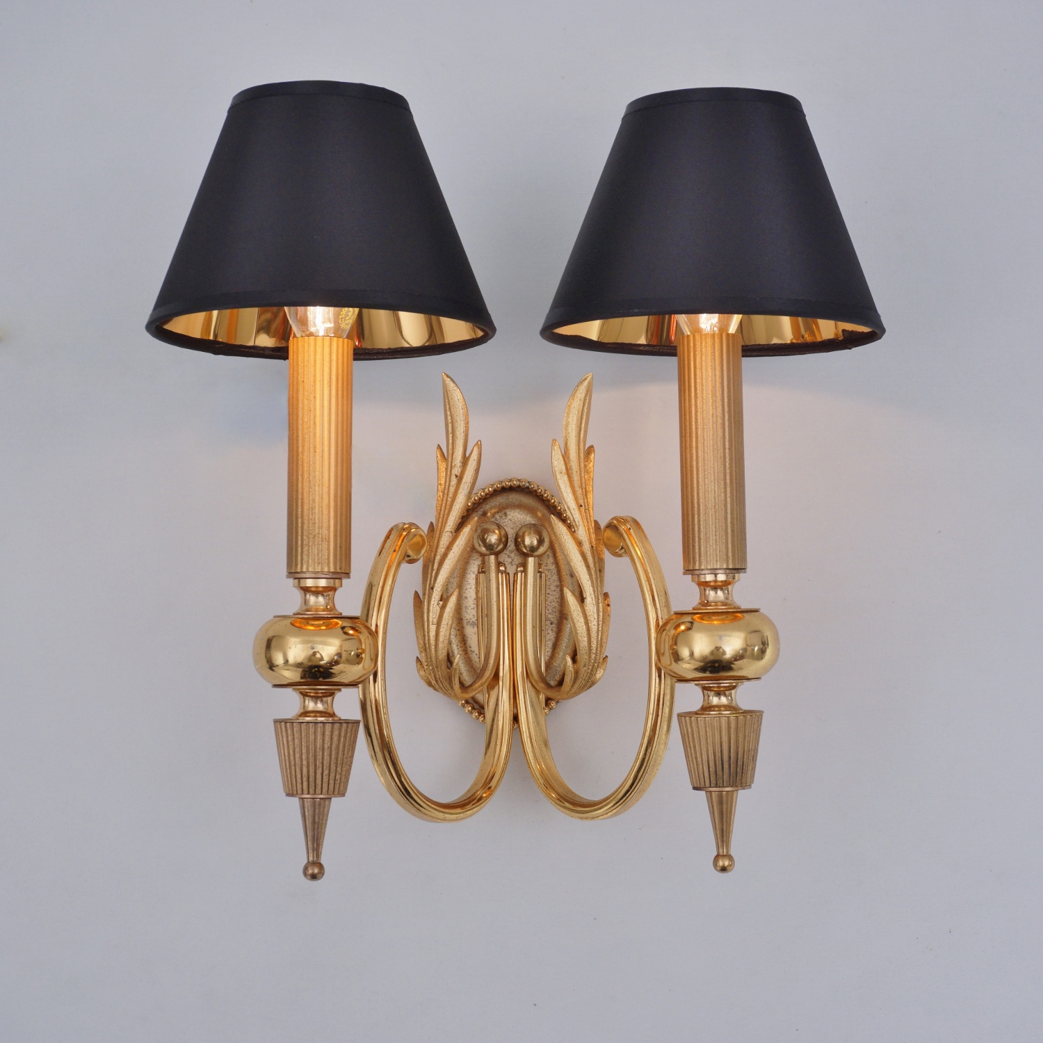 Sciolari wall lights, a pair with gold plated gilt brass frames in the Neoclassical style, 1970`s ca, Italian.