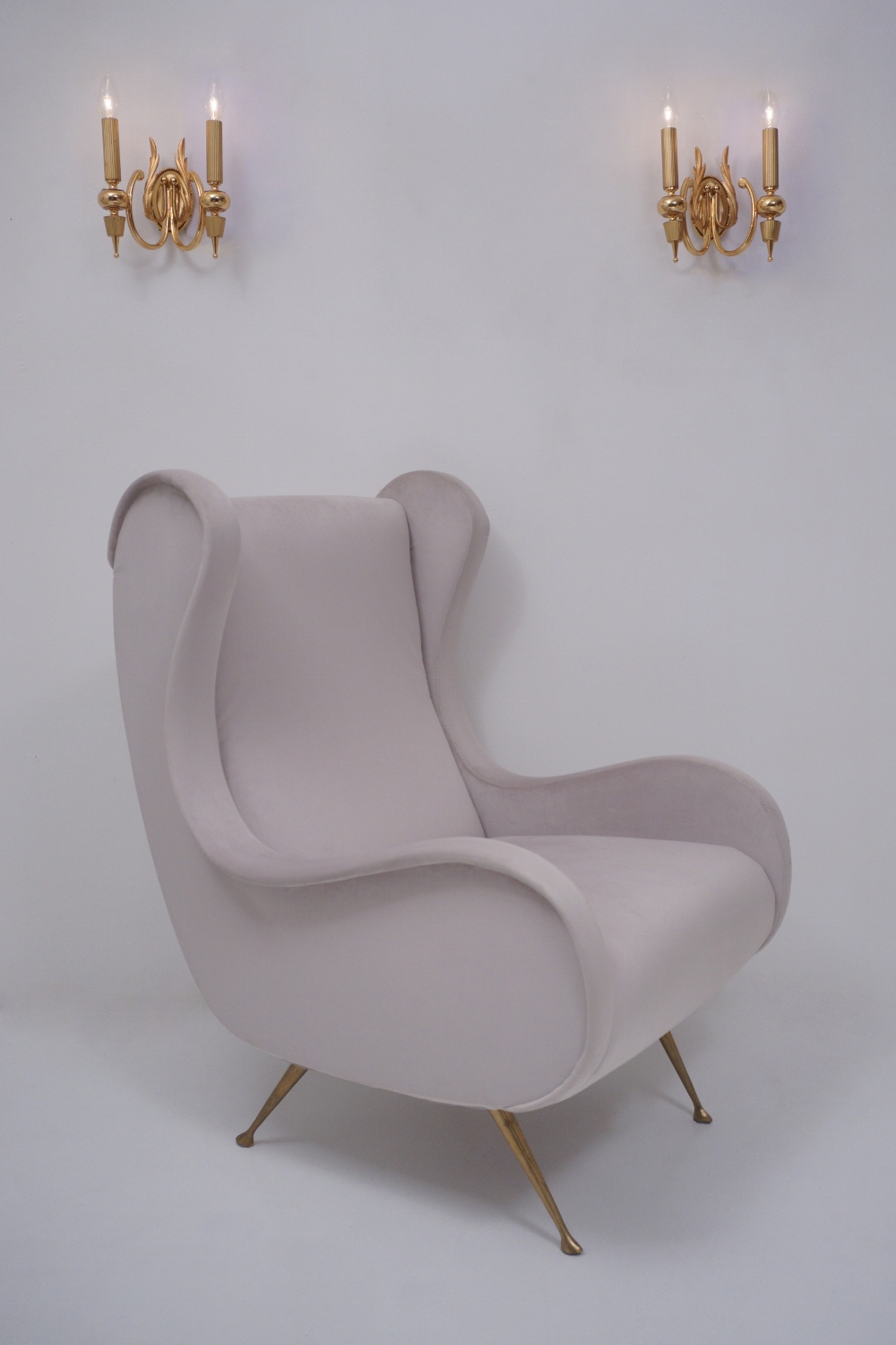 At the centre of each frame there is a cartouche oval body in gilt brass satin finish with a beaded trim in polished finish.