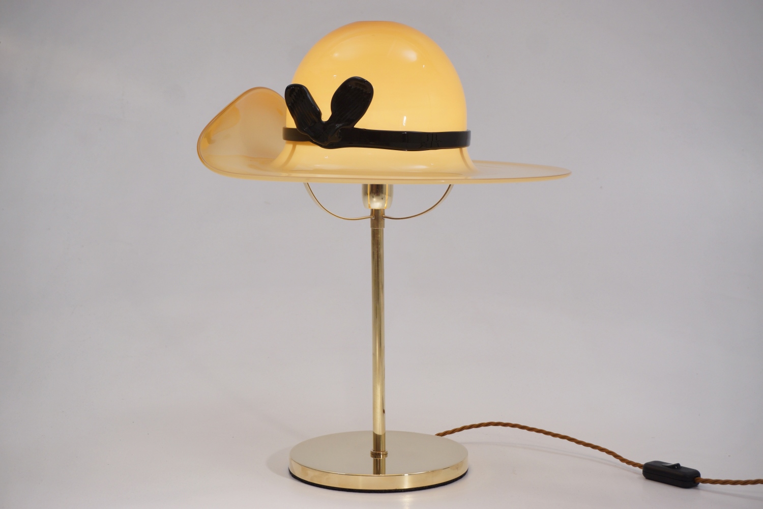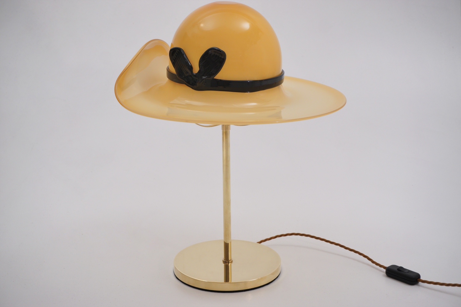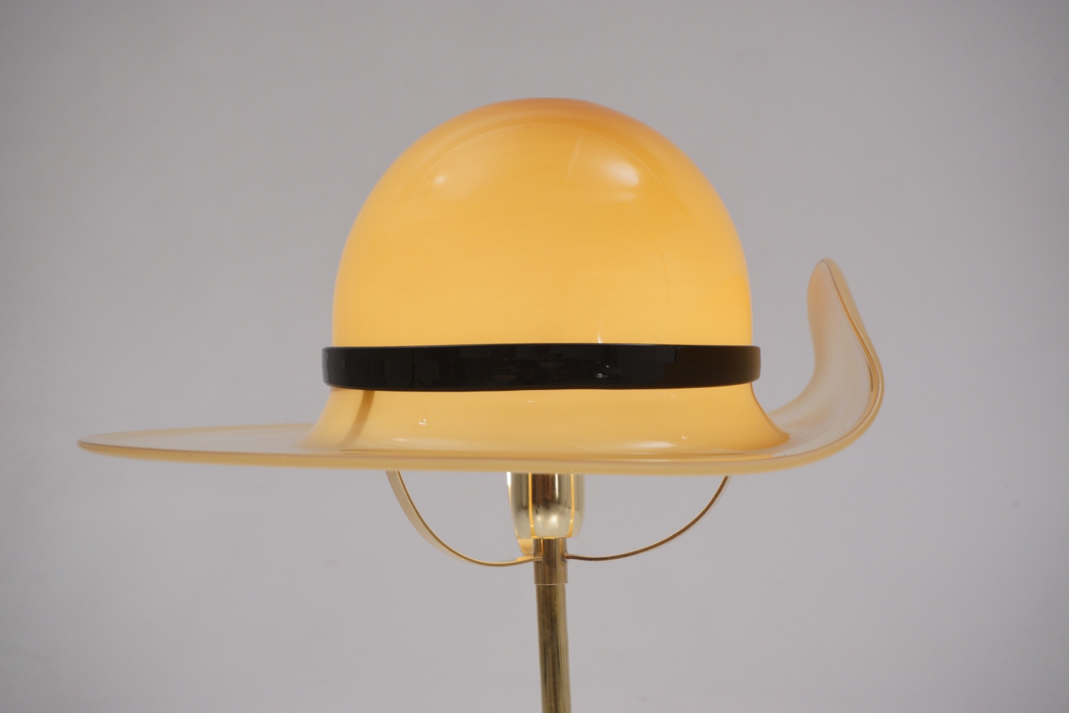Venini Murano Glass hat lamp on a brass base, 1970`s ca, Italian.