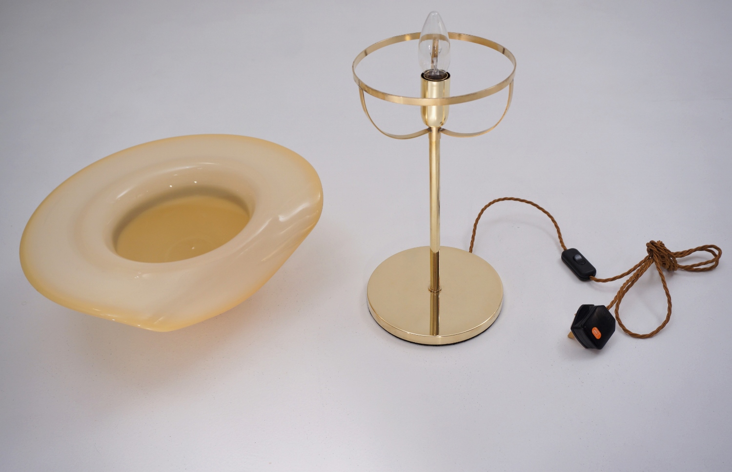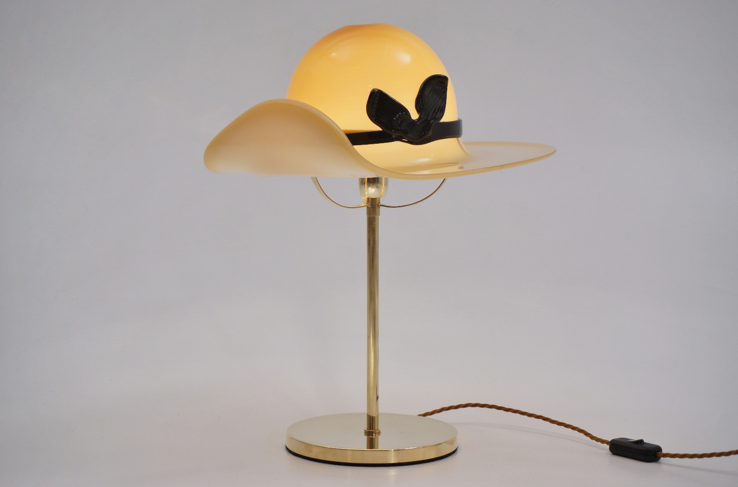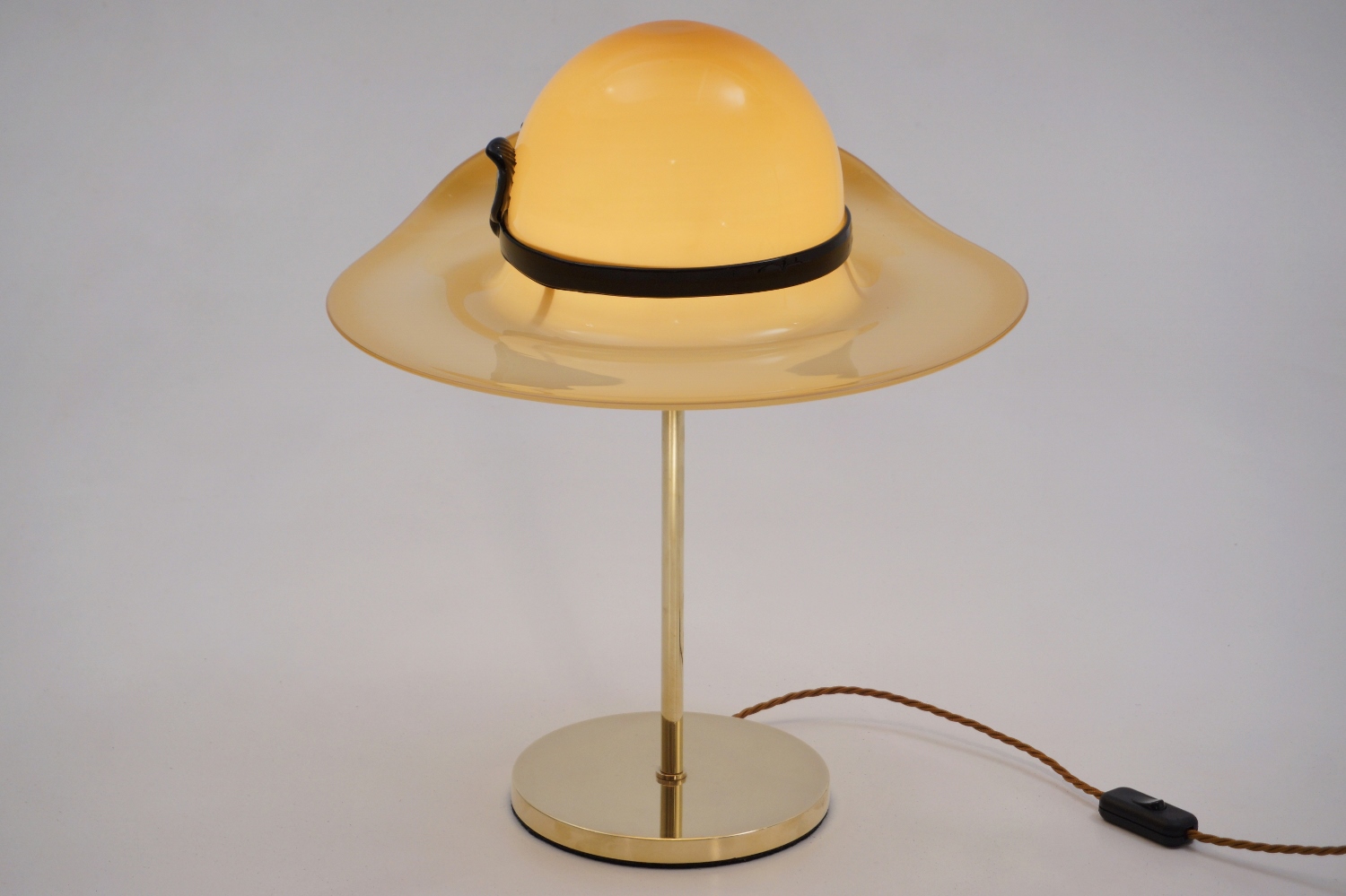 Venini Murano Glass hat lamp on a brass base, 1970`s ca, Italian.