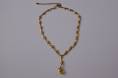 The necklace has a closing clasp and there is 4 cm of chain to vary the length. The chain has a tag stamped Avon and at the end of the chain there is a gold-plated ball to weight it down.
