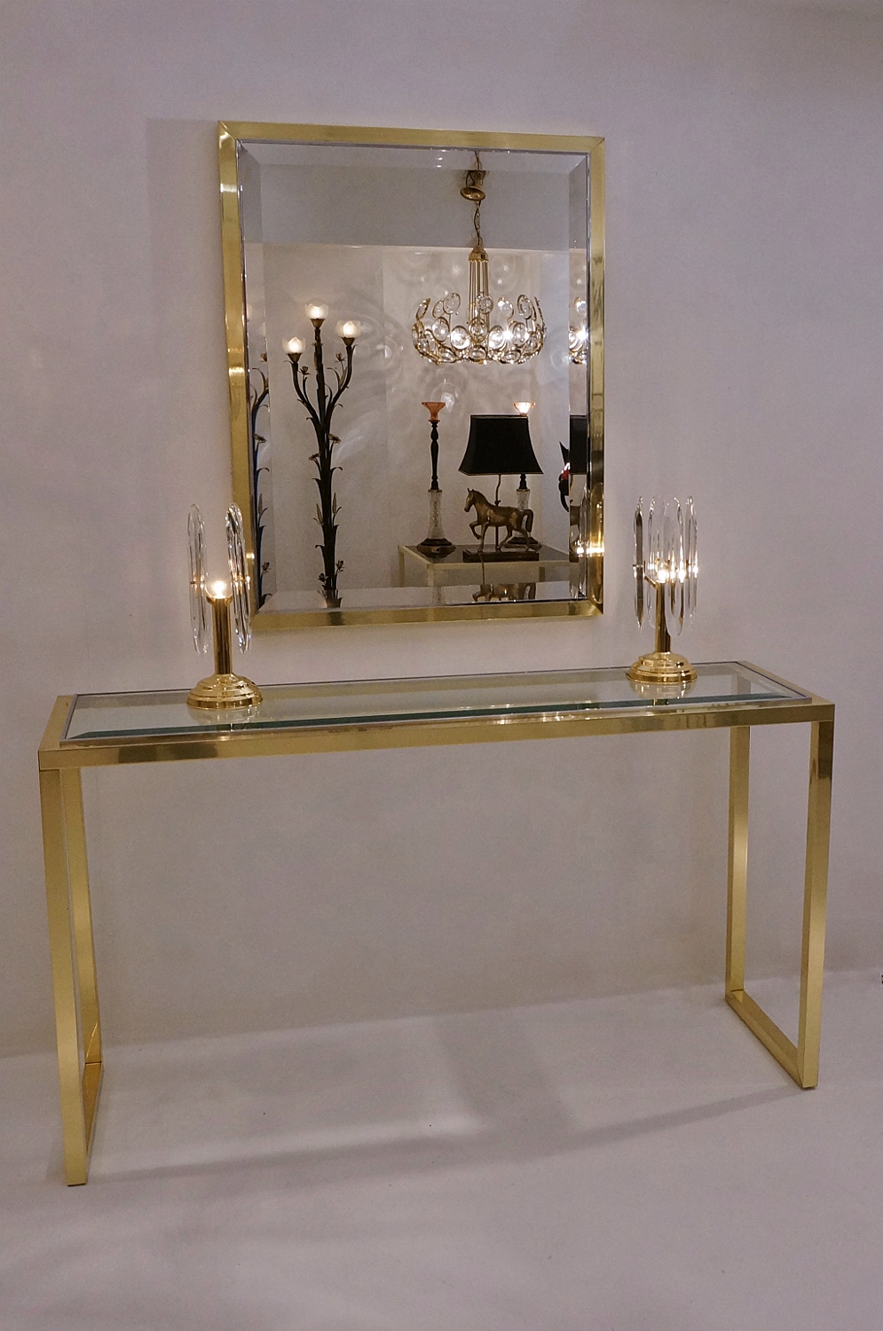 Willy Rizzo console table in brass, chrome & glass, 1970`s ca, Italian.